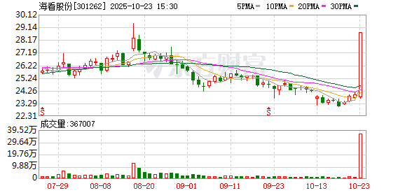 海看股份今日涨停,全天换手率30.06%,成交额10.30亿元,振幅21.68%。龙虎榜数据显示,营业部席位合计净卖出2.04亿元。