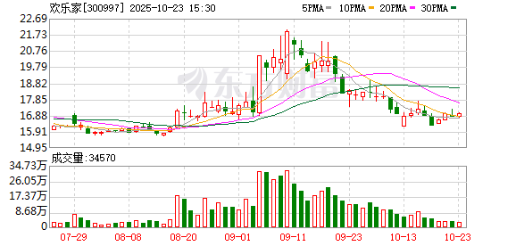 欢乐家:截至2025年10月20日公司股东总数为18577户