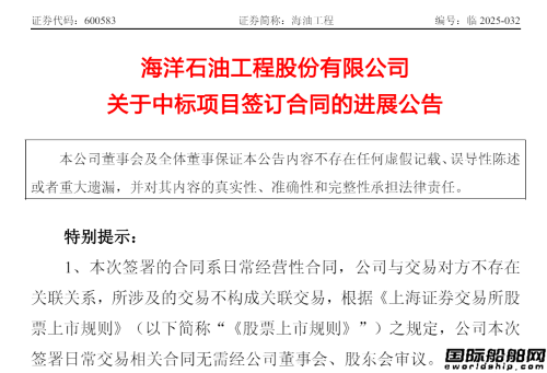 据了解,海油工程是中国海洋石油集团有限公司控股的上市公司,是国内唯一集海洋油气开发工程设计、采购、建造和海上安装、调试、维修,以及液化天然气、海上风电、炼化工程等为一体的大型工程总承包公司,也是亚太地区规模最大、实力最强的海洋油气工程总承包商之一。