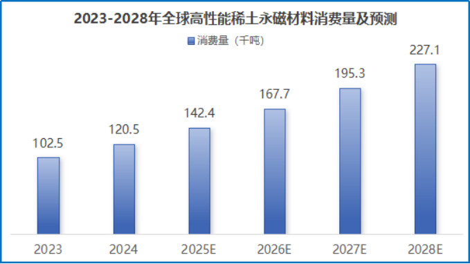 现在人形机器人、低空经济这些新兴领域,对高性能稀土永磁材料需求也越来越大。行业预测到2028年,全球高性能稀土永磁材料消费量能涨到23万吨左右。