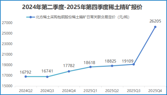 自2024年第四季度起,稀土价格开始上涨,到2025年第四季度涨价更甚。