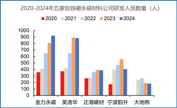 到2024年,金力永磁研发人员已达921人,比英洛华、正海磁材等同行都多,正是这支团队让技术创新不断落地。
