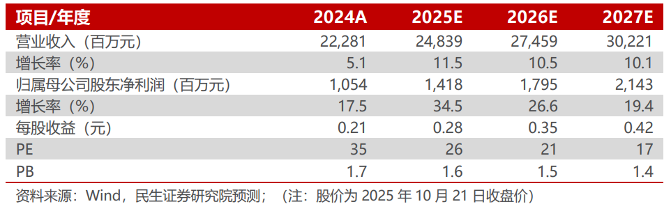 ■ 事件:2025年10月21日,公司发布2025年三季报。25Q1-3公司实现营业收入169.59亿元,同比增长11.85%;归母净利润9.39亿元,同比增长19.29%;扣非归母净利润9.23亿元,同比增长18.17%。单25Q3公司实现营业收入56.58亿元,同比增长15.98%;归母净利润3.40亿元,同比增长1.78%;扣非归母净利润3.14亿元,同比增长1.30%。
