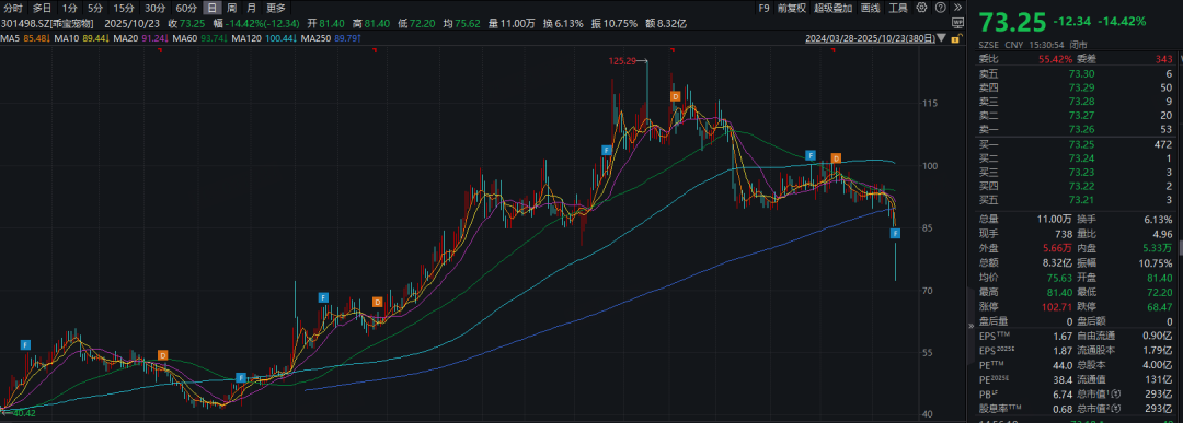 二级市场上,截至23日收盘,乖宝宠物下跌14.42%,报73.25元/股,总市值约293亿元。