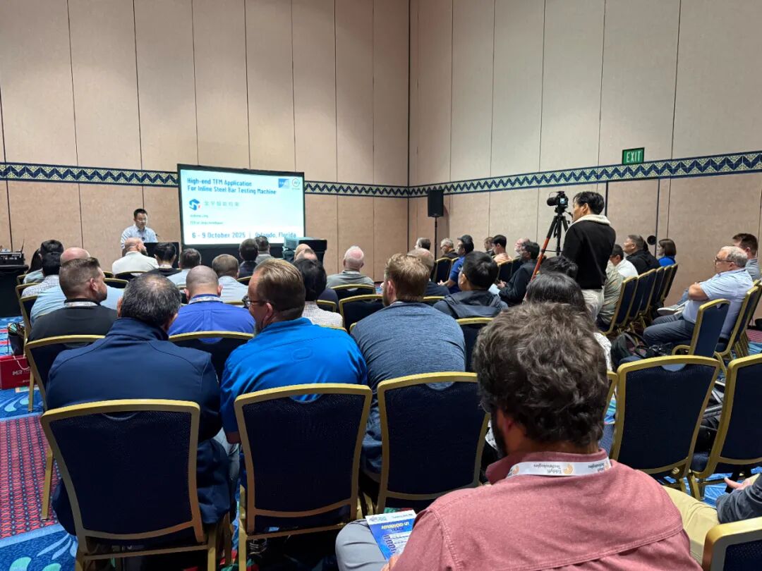 此外,10月6日—9日,全球无损检测(NDT)领域年度盛会——美国无损检测大会(American Society for Nondestructive Testing Conference,简称ASNT Conference)在海外举办。作为国内无损检测领域的新锐力量与技术创新代表,南钢新产业执行总裁兼综合部部长许云峰、江苏金宇智能检测系统有限公司总经理凌继中受邀参会。10月7日下午,凌继中于会上发表“全聚焦相控阵超声技术在棒材中的应用”主题演讲,与现场嘉宾深入分享金宇智能在该技术领域的研发成果、应用经验以及未来发展方向。结合该公司在棒材检测领域的实际应用案例,展示该技术在提升产品质量、保障生产安全及降低企业成本等方面的显著成效,得到了全球同行与客户的高度认可与广泛关注。