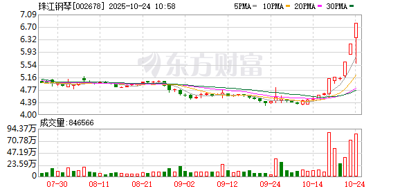 珠江钢琴上演“地天板”行情,股价从跌停拉升至涨停,截至09:50,该股成交量8244.44万股,成交额5.14亿元,振幅达20.03%,换手率6.07%,涨停板封单金额为5.45亿元。(数据宝)