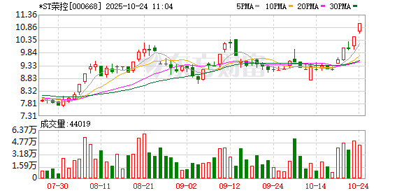 *ST荣控再度涨停,4个交易日内录得3个涨停,累计涨幅为15.06%,累计换手率为11.78%。截至10:09,该股今日成交量393.01万股,成交金额4251.37万元,换手率2.68%。最新A股总市值达16.15亿元。