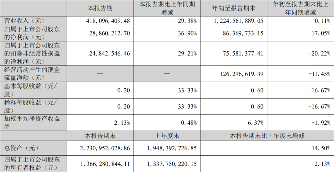 从2025年前三季度的整体情况来看,公司累计实现营业收入5.30亿元,同比增长13.94%;累计实现归属于上市公司股东的净利润为0.16亿元,同比实现扭亏为盈。