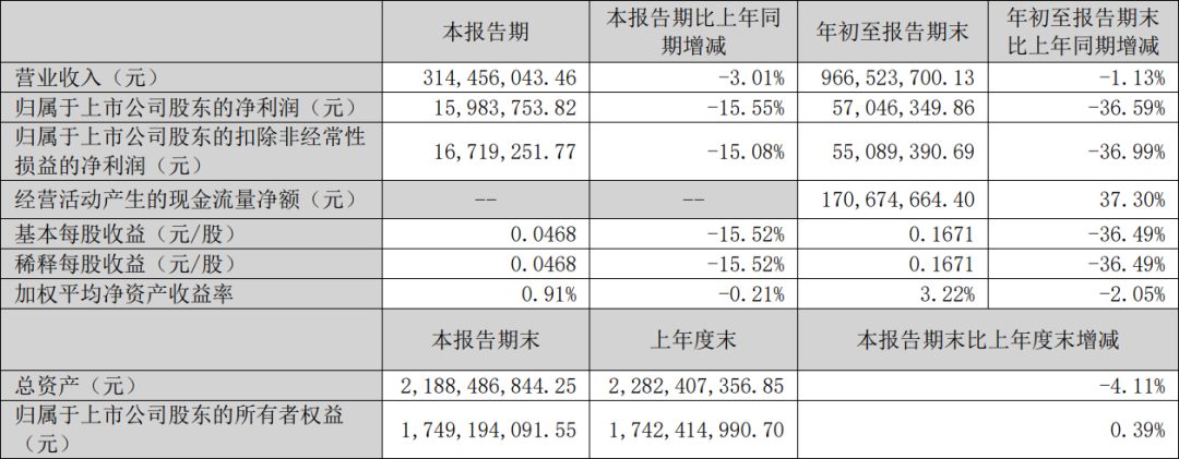然而,纵观2025年前三季度,公司业绩则有所下滑。前三季度累计营业收入为12.25亿元,与上年同期相比微增0.11%;但归属于上市公司股东的净利润为0.86亿元,同比下降了17.05%。