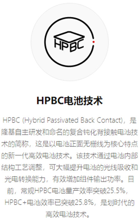 除了高利润的海外市场,“黑科技”HPBC2.0技术加持的新品也被隆基绿能寄以厚望。隆基绿能自主研发的HPBC2.0电池技术,通过复合钝化工艺与泰睿硅片创新,实现了晶硅电池理论效率(29%)的91%,量产效率突破26.5%,良率提升至97%。其核心优势包括全生命周期发电量提升6%-8%,高温环境更可靠性,消除焊线弯折问题,抗裂性显著增强,适配分布式场景的弱光发电需求等。