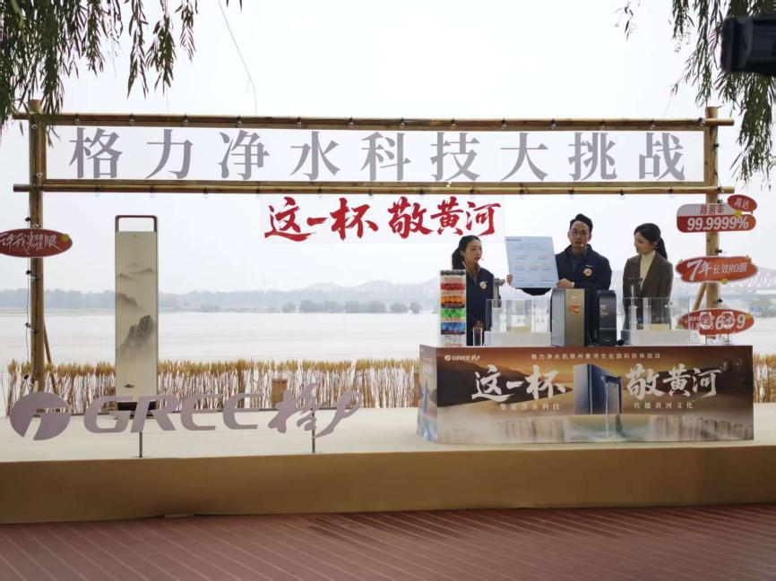 【大河财立方记者程帅星文图】10月23日,格力电器在郑州黄河文化公园举办了一场长达12个小时的不间断直播。直播中,格力电器市场总监朱磊现场展示净化黄河水,并将净化后的黄河水一饮而尽。