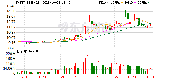 阿特斯10月24日大宗交易平台共发生2笔成交,合计成交量100.00万股,成交金额1080.00万元。成交价格均为10.80元,相对今日收盘价折价11.04%。从参与大宗交易营业部来看,机构专用席位共出现在2笔成交的买方或卖方营业部中,合计成交金额为1080.00万元,净买入1080.00万元。