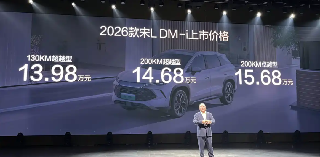 10月23日,比亚迪三款新车同步上市,包括2026款秦L DM-i、2026款宋L DM-i以及2026款宋Pro DM-i。其中,2026款秦L DM-i售9.68-10.68万元,2026款宋L DM-i售13.98-15.68万元,2026款宋Pro DM-i售9.98-12.28万元。