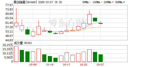 昊创瑞通今日下跌3.49%,全天换手率39.38%,成交额5.48亿元,振幅6.02%。龙虎榜数据显示,机构净买入2187.86万元,营业部席位合计净卖出997.10万元。