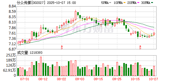 证券时报·数据宝统计显示,分众传媒今日收盘价为7.61元,上涨1.74%,日换手率为0.84%,成交额为9.24亿元,全天主力资金净流出736.71万元,近5日该股累计上涨1.60%,近5日资金合计净流出1.59亿元。