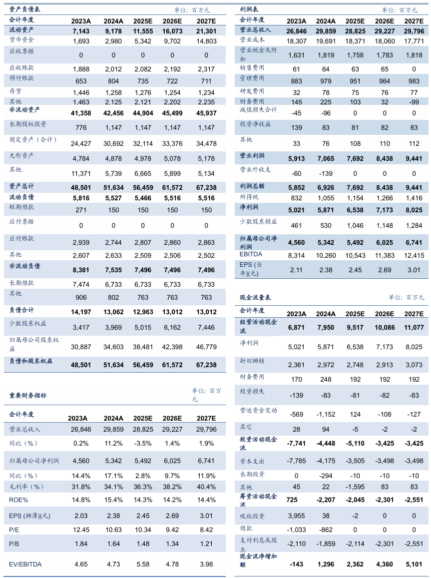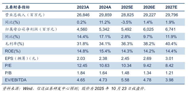 分季度看,2025年三季度,公司单季度营业收入79.39亿元,同比增长3.34%;单季度归母净利润13.31亿元,同比下降8.52%。