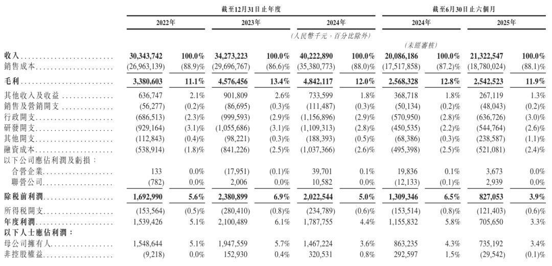 招股书显示,中伟新材2022年、2023年、2024年营收分别为303.44亿元、342.73亿元、402亿元;毛利分别为33.8亿元、45.76亿元、48.42亿元;毛利率分别为11.1%、13.4%、12%。