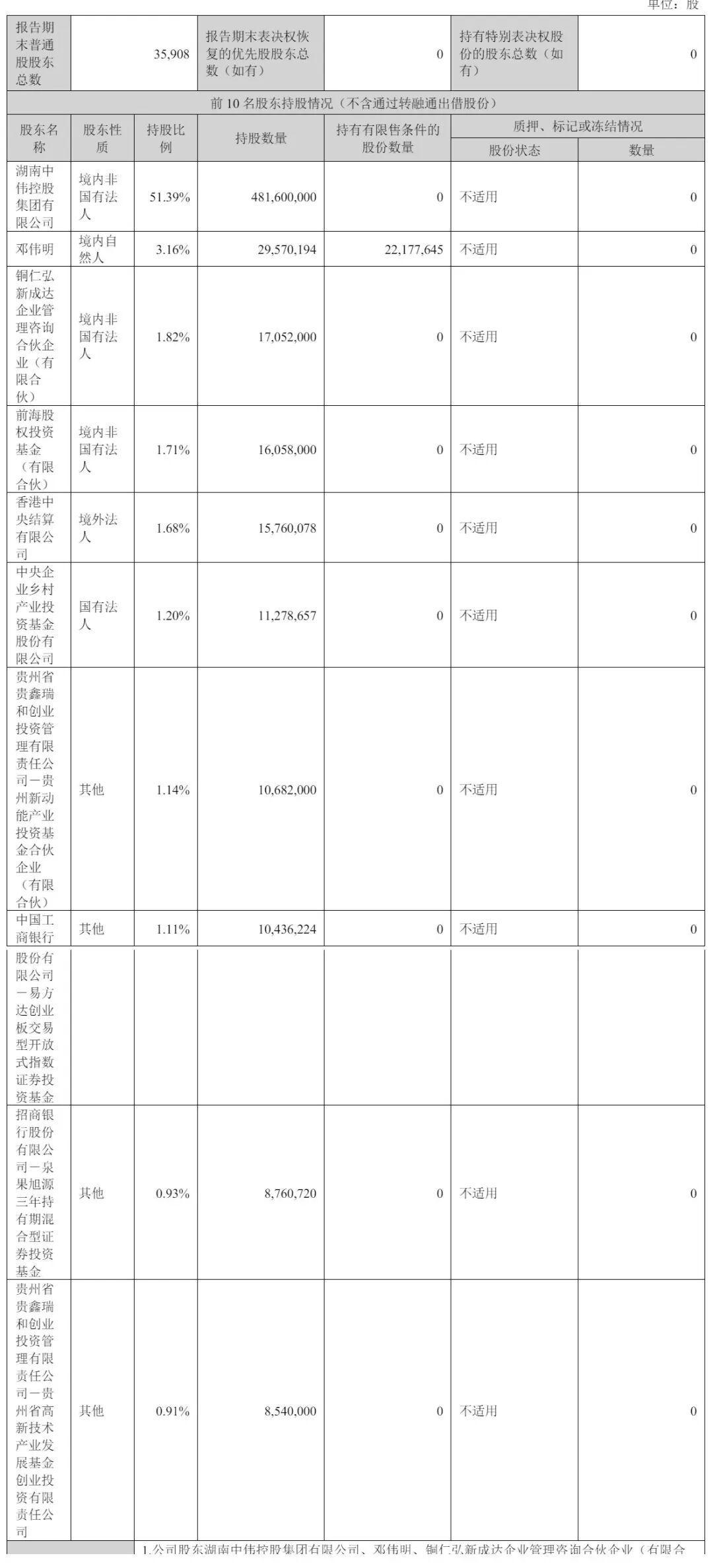 截至2025年6月30日,湖南中伟控股集团有限公司持股为51.39%,邓伟明持股为3.16%,铜仁弘新成达企业管理咨询合伙企业(有限合伙)持股为1.82%,前海股权投资基金(有限合伙)持股为1.71%,香港中央结算有限公司持股为1.68%;