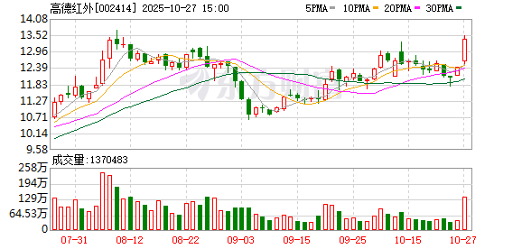 高德红外(002414)10月27日晚间发布三季报,今年第三季度,公司实现营业收入11.34亿元,同比增长71.07%;归母净利润4.01亿元,同比增长1143.72%;前三季度营业收入30.68亿元,同比增长69.27%;归母净利润5.82亿元,同比增长1058.95%。