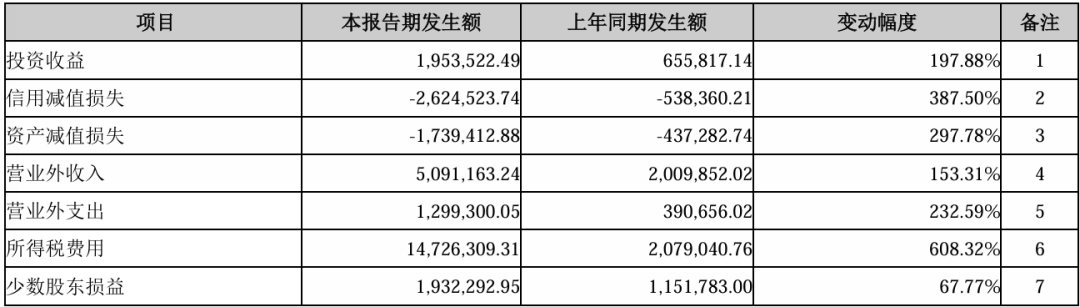 2、年初至本报告期合并利润表较上年同期变动幅度较大的项目列示如下: