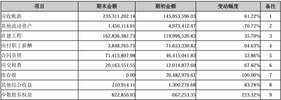 1、期末合并资产负债表较年初变动幅度较大的项目列示如下: