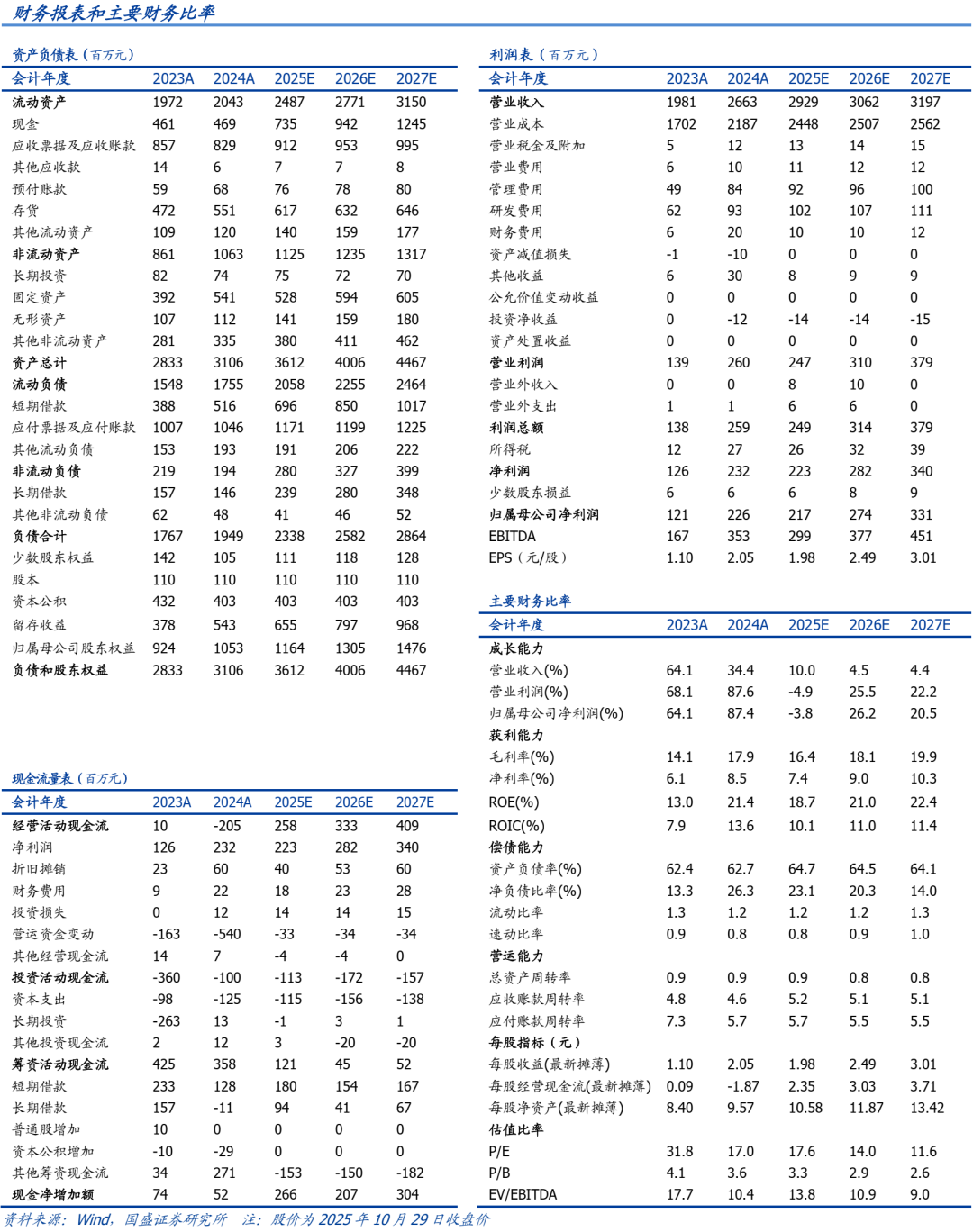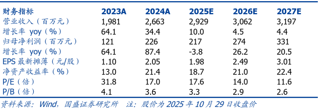 投资建议。公司专注小口径能源用无缝钢管制造,产能扩张的同时,下游需求向好支撑其盈利释放,高端产品占比提升有望支撑其估值走高,受不锈钢管毛利回落影响,短期业绩小幅下行,预计公司2025年~2027年实现归母净利分别为2.17亿元、2.74亿元、3.31亿元,对应PE为17.6、14.0、11.6倍,维持“买入”评级。
