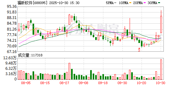 10月30日福昕软件(688095)收盘价89.50元,收盘上涨15.69%,全天换手率12.83%,振幅18.01%,成交额10.43亿元。科创板交易公开信息显示,当日该股因日收盘价涨幅达15%等上榜。