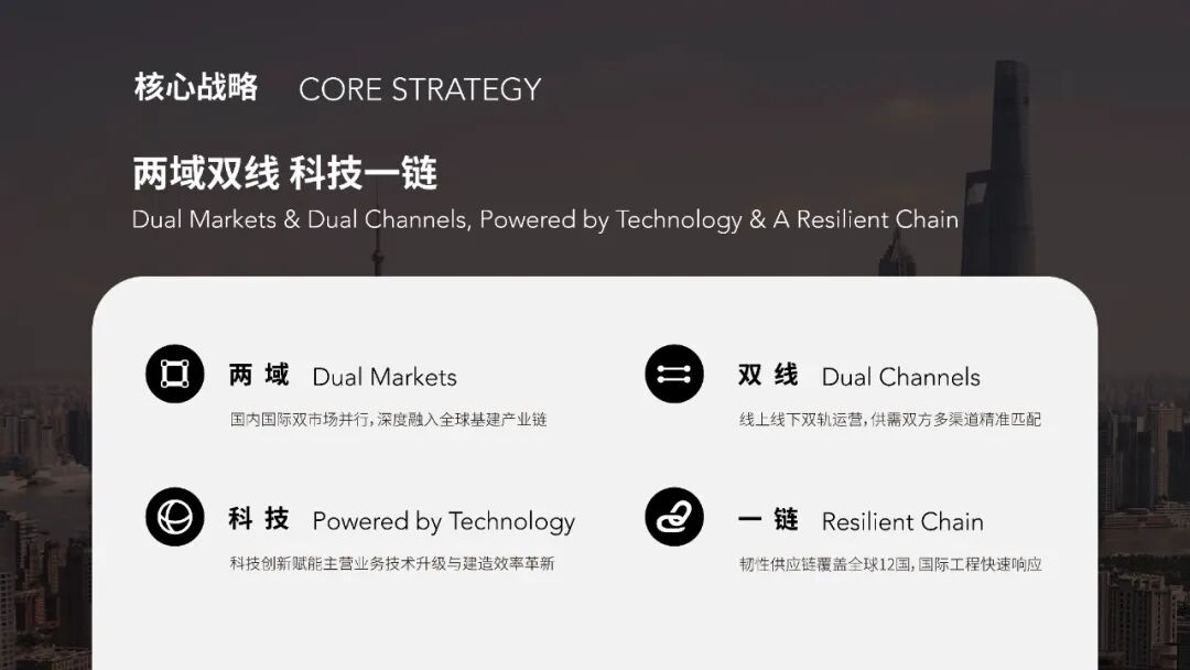 经济全球化是社会生产力发展的客观要求。全筑股份正围绕“两域双线科技一链”发展战略,秉持“国内做精做厚、海外做广做深”的经营理念,立足中国、欧洲、澳洲、东南亚、中东五大区域,坚持以科技创新为动能,以供应链服务为抓手,整合线上线下资源,围绕策划咨询、设计服务、工程施工、供应链平台、产业投资等事业版块,加速全球业务对接。