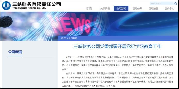 2024年6月,三峡财务公司官方网站还曾发布程志明主持党纪学习教育工作会议并作动员部署讲话的相关动态。