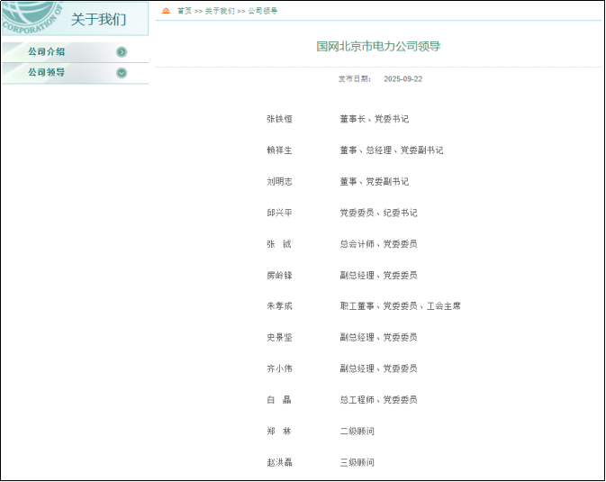 近日,据国网北京电力官网更新的领导班子名单显示,房岭锋已任国网北京电力副总经理、党委委员,李百顺、常世平、路俊海、周建方已不在顾问名单中。