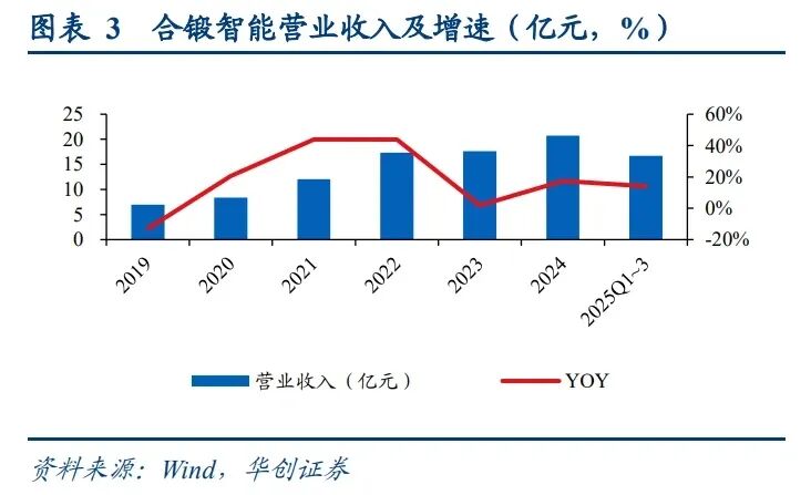 2024 年,公司实现营业收入 20.7 亿元,同比增长 17.4%;归母净利为亏损 0.89 亿元, 2023 年同期盈利 0.17 亿元。2025Q1~3,公司实现营业收入 16.7 亿元,同比增长 14.0%; 归母净利亏损 0.44 亿元,去年同期盈利 0.08 亿元,主要系 Q3 计提资产减值损失 6209 万 元,使得业绩有所承压。 2021 年公司实现上市以来的最高业绩,主要系核心主业的市场需求旺盛,其中高端成形 机床板块得益于新能源车、复合材料、军工等行业的高速发展,订单量实现较大增长。 2024 年为公司上市以来首次亏损,主要系:1)公司高端成形机床业务盈利能力下滑所 致,其中液压机毛利率同比下降 11.97 个百分点至-4.98%,机压机毛利率下降 13.81 个百 分点至 2.62%;2)公司资产减值损失为 0.84 亿元,主要由于经济形势和市场竞争,迫使 公司降价销售,进而触发了对于存货、长期股权投资等资产的减值计提。