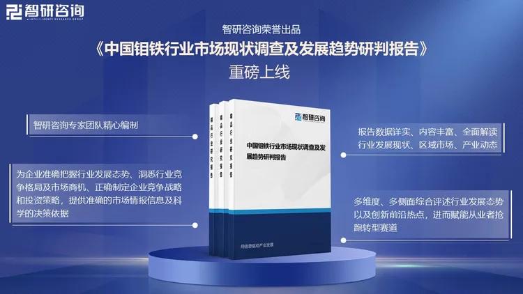 由智研咨询专家团队精心编制的《中国钼铁行业市场现状调查及发展趋势研判报告》(以下简称《报告》)重磅发布,《报告》旨在从国家经济及产业发展的战略入手,分析钼铁行业未来的市场走向,挖掘钼铁行业的发展潜力,预测钼铁行业的发展前景,助力钼铁行业的高质量发展。