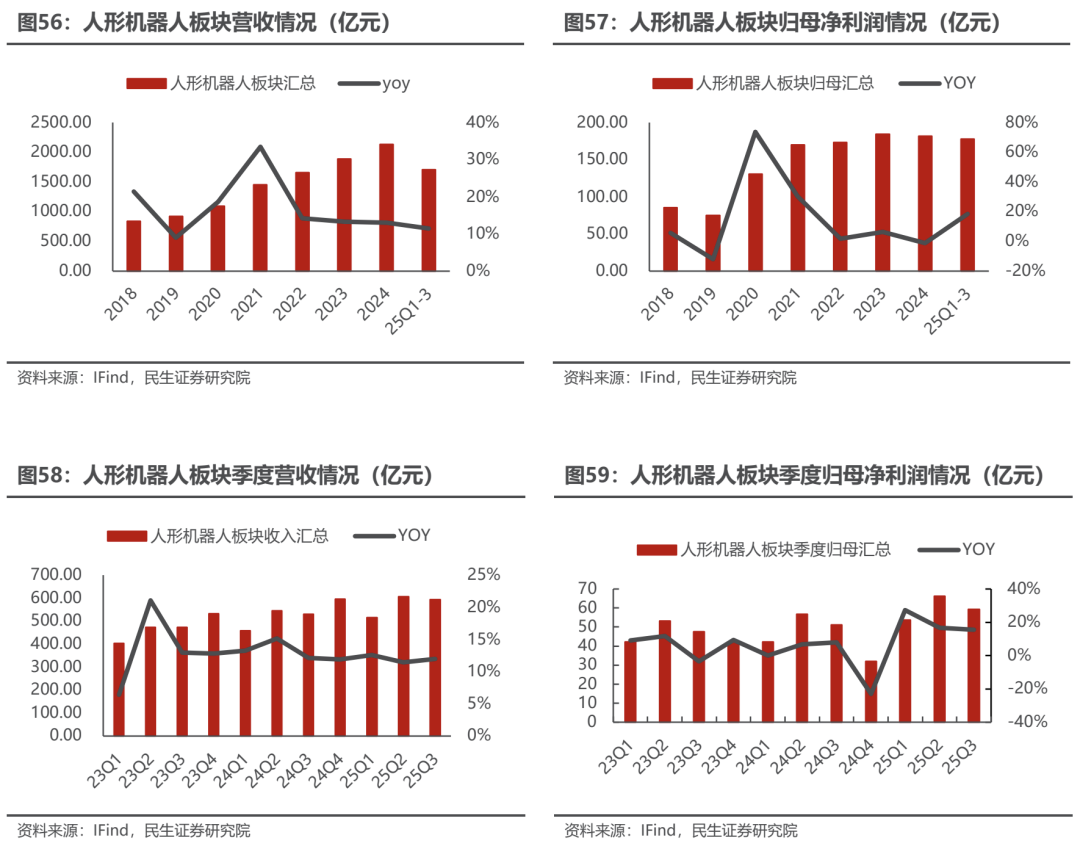 ■ 人形机器人:营收和利润均实现双位数同增。