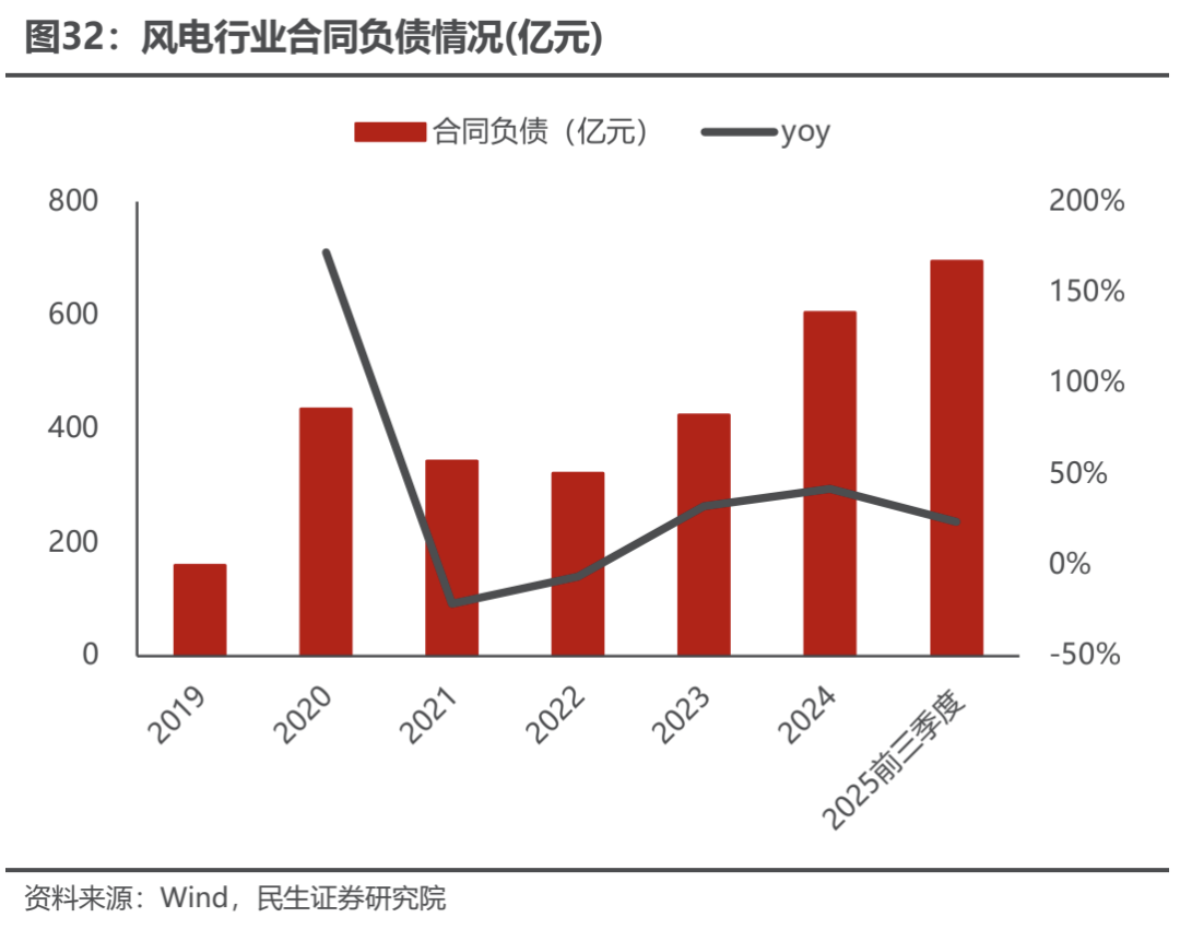 合同负债持续增长。自2021年合同负债出现回落后,2022年后开始逐步增长;2024年合同负债为604.36亿元、同比增长42.2%,2025前三季度合同负债为694.98亿元,同比增长24.0%,产业链相关公司在手订单充足、下游需求堆积。