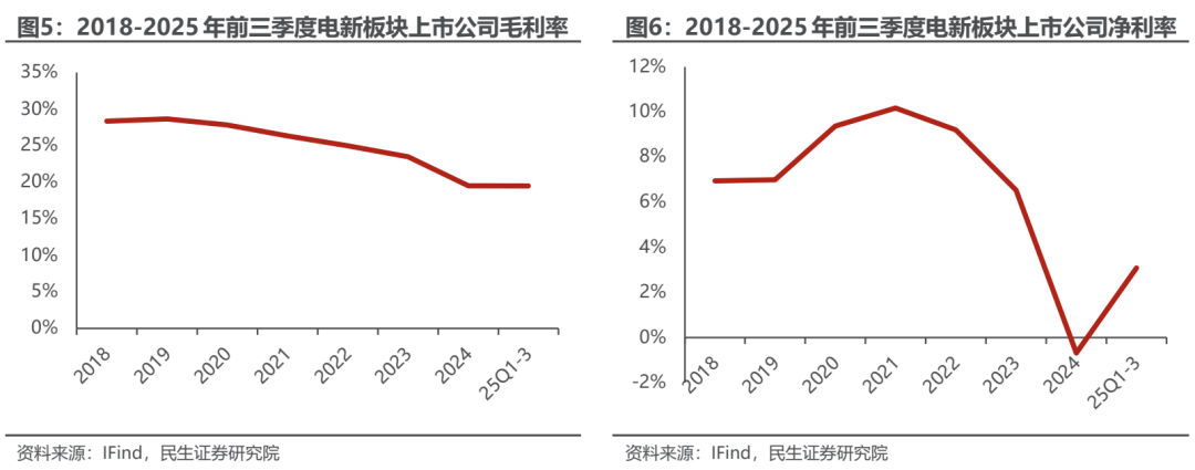 25年Q1-Q3板块毛利率同比下滑,净利率有所回升。2025年Q1-Q3行业平均毛利率为29.35%,同比减少1.54pcts;净利率为8.8%,同比增加2.30pcts。