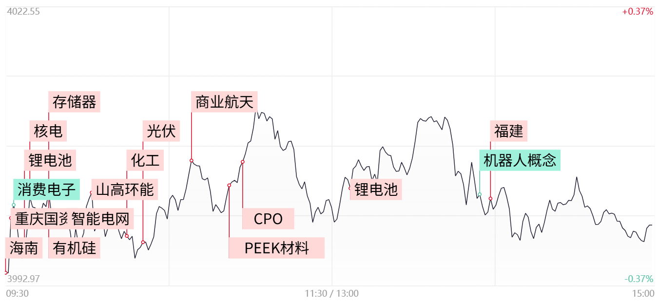 板块上,锂电池板块涨幅居前,电解液方向领涨,华盛锂电、多氟多、天际股份、江苏国泰、永太科技等个股涨停。