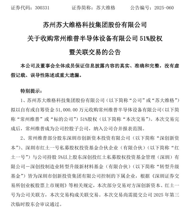 交易完成后,常州维普将成为苏大维格控股子公司,纳入合并报表范围,苏大维格也借此切入半导体量检测设备领域,双方将发挥各自在激光直写光刻和掩模缺陷检测领域的优势。