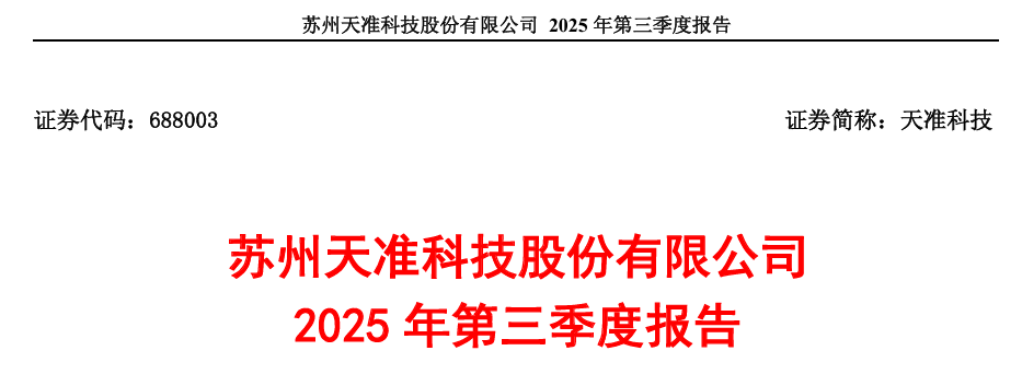 公开资料显示,苏州天准科技股份有限公司是科创板首批挂牌上市企业,首次过会三家企业之一。公司专注服务电子、半导体、新汽车等工业领域,提供业界领先的高端视觉装备产品。三季度业绩公告称,2025年前三季度营收约9.77亿元,同比增加14.79%;归属于上市公司股东的净利润亏损约1517万元。