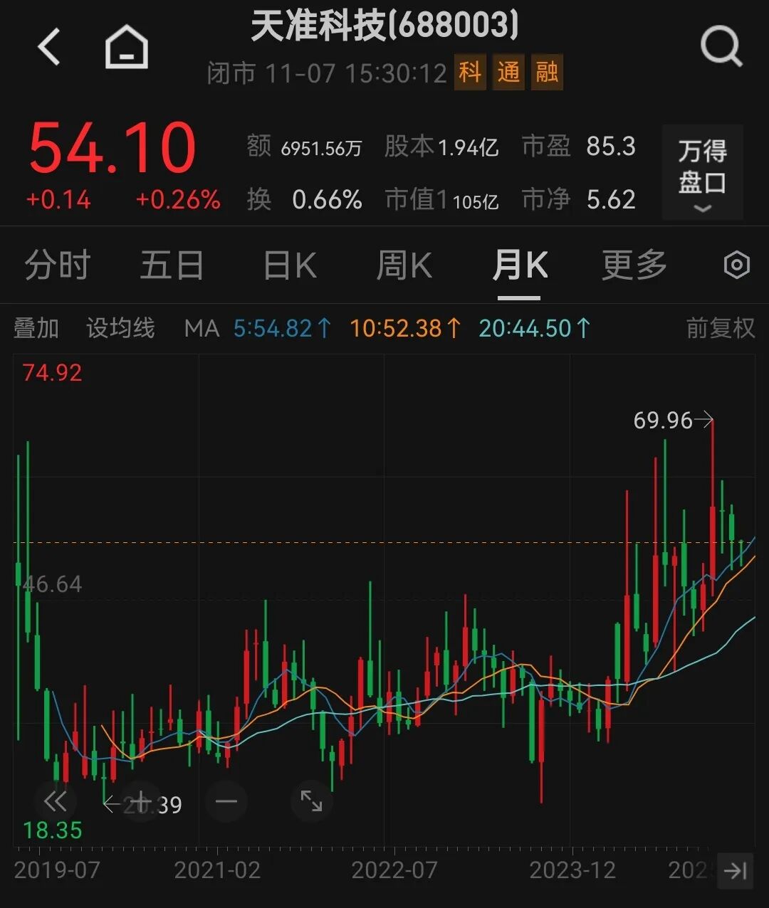 截至11月7日闭市,天准科技股价报54.1元,市值约为105亿元。按此计算,本次捐赠总价值约4.4亿元。