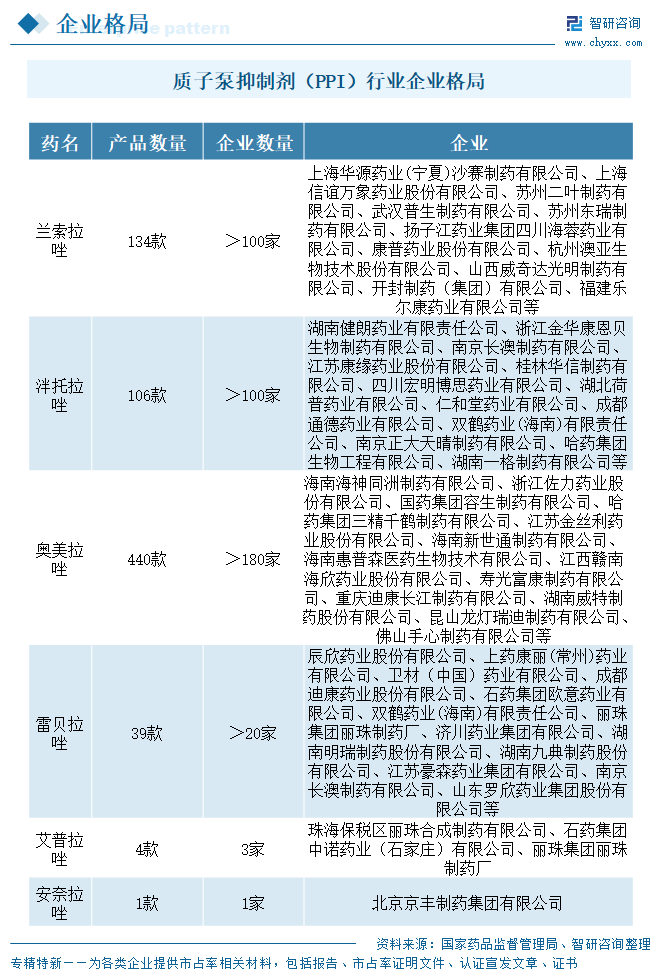 ●以上数据及信息可参考智研咨询(www.chyxx.com)发布的《中国质子泵抑制剂行业市场竞争现状及产业趋势研判报告》。