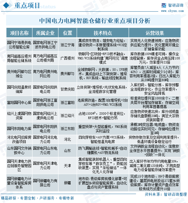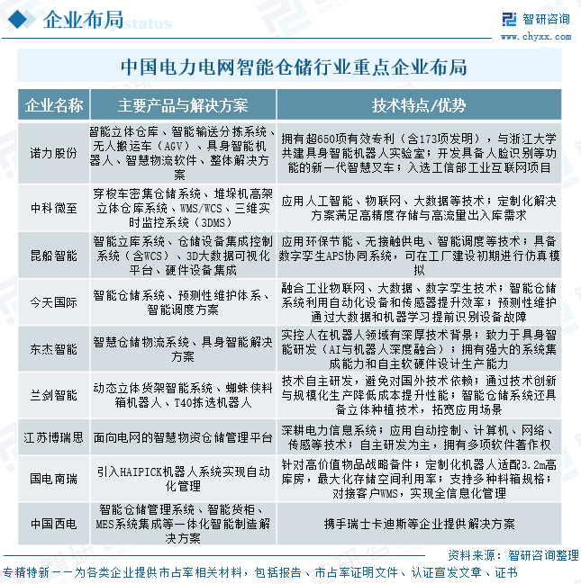 中国电力电网智能仓储行业企业布局
