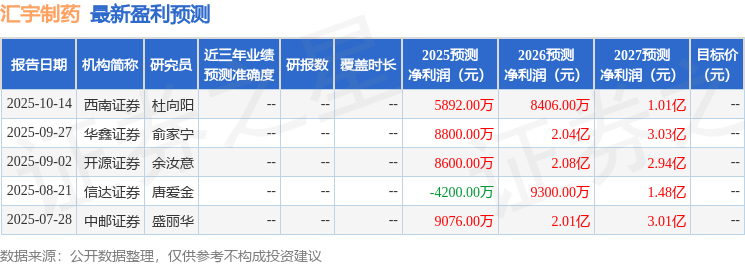 以下是详细的盈利预测信息: