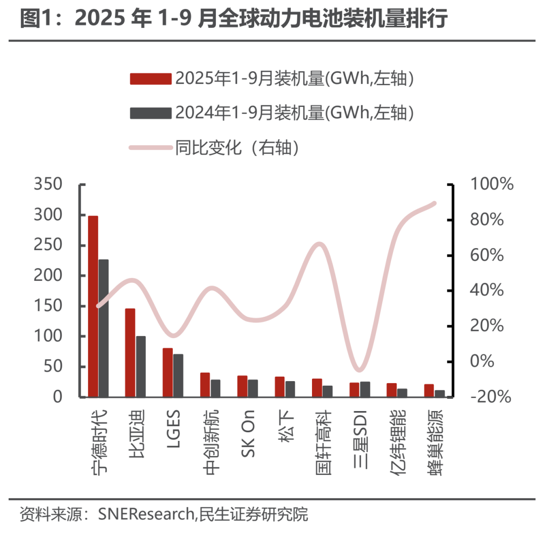 ■ 新能源车:2025年1-9月全球动力电池总装车量同比增长34.7%