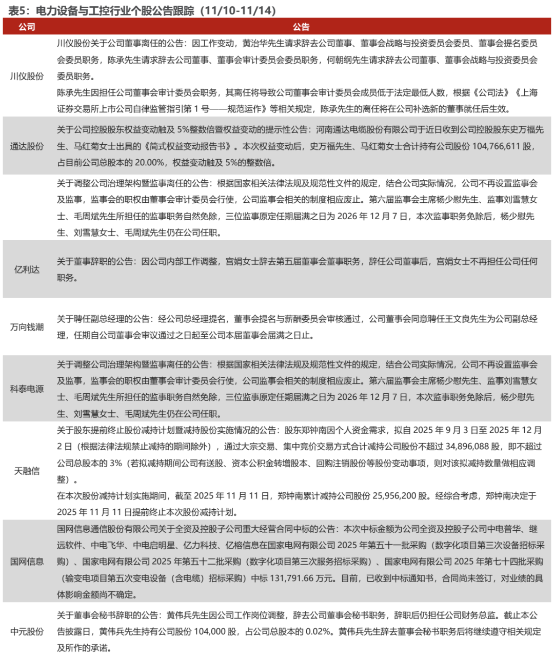 3)关注适应降本增效需要、渗透率有望提升的大兆瓦关键零部件等,关注崇德科技、盘古智能等。