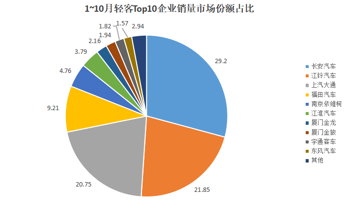 再看累计销量排名情况,与1~9月相比,1~10月轻客市场Top10企业及其排名并未发生变化,10月销量未对累计销量排名造成影响,市场格局稳定。