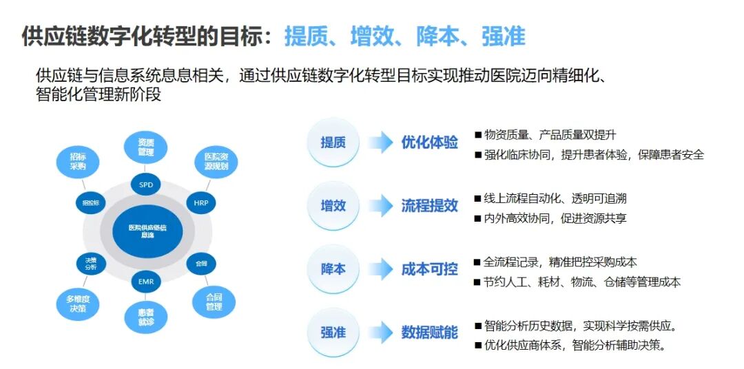 会上,林雪焰表示,后疫情时代数字化转型已成行业共识,供应链数字化转型是“三位一体”智慧医院(即“智慧医疗、智慧服务、智慧管理”)实现高质量发展的关键支撑,也是医院实现提质、增效、强准目标的核心路径。当前医院供应链存在证据断裂、流程错漏、管理混乱、数据分散等痛点,制约合规安全与精准决策,亟需通过数字化转型破解。