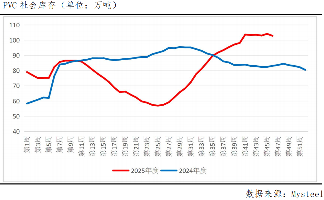 从供应面看,压力依然显著。尽管近期部分装置安排检修,导致开工率小幅下降至78.51%,但总体仍处于较高水平。同时,社会库存虽小幅去化至102.82万吨,但仍高于去年同期23.75%,处于历史高位,高库存对价格的压制作用持续存在。