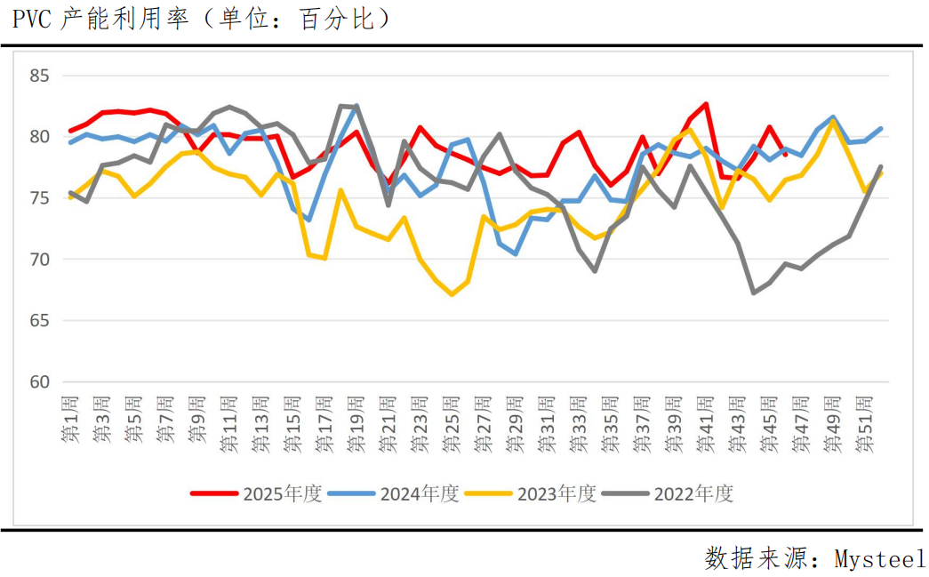 当市场上烧碱利润较为不错时,其盈利可以大幅抵消生产PVC带来的亏损。且如果PVC因亏损而减产,会导致氯气滞销,进而迫使整个氯碱装置降负或停产。为了维持核心生产线的稳定运行,企业不得不继续生产PVC来消耗这些氯气。因此,尽管PVC亏损严重,但仍缺乏降低负荷的动力。