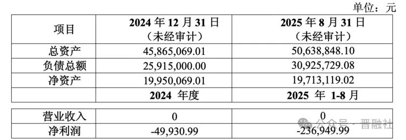 从成立至2025年8月,同享科技尚无营业收入,净利润合计近-30万元。