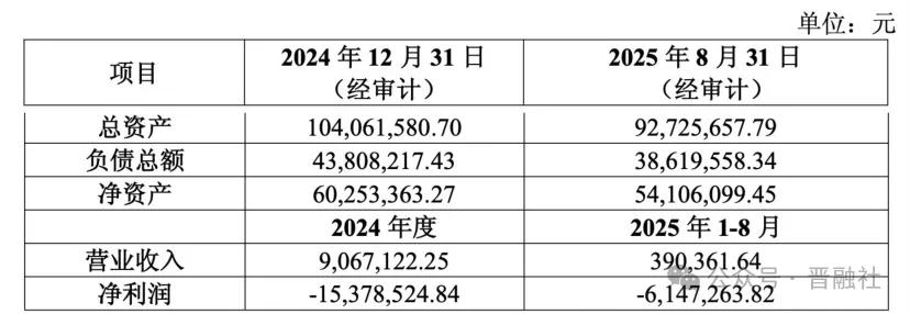 同时,太原制药资产规模也出现缩水。2024年末公司总资产为1.04亿元,到今年8月末已降至0.93亿元;同期净资产从6025.34万元降至5410.61万元。